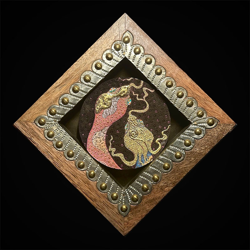 テンペラ画技法を応用して創り上げた、美しく摩訶不思議、そして荘厳な世界観を楽しんでいただきたい。