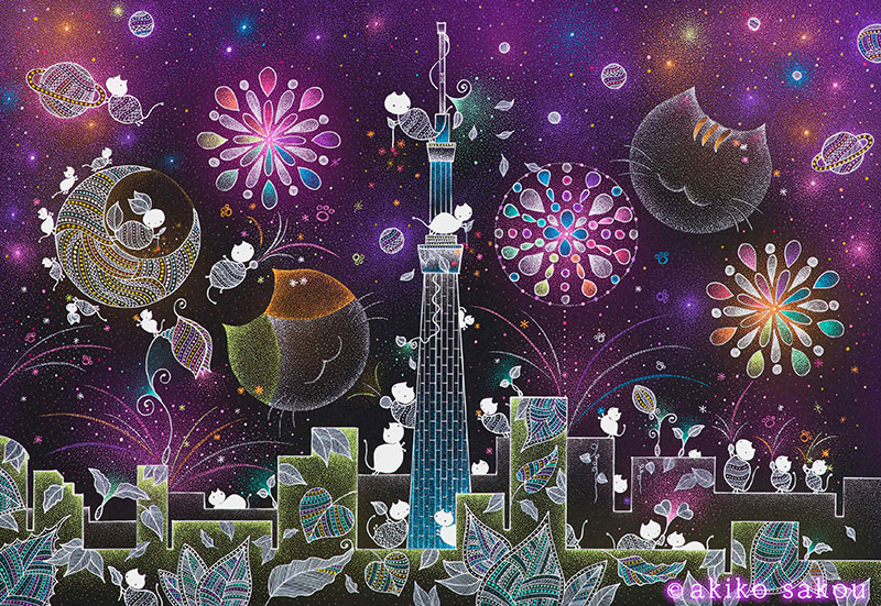 点描一つ一つが光を放つとき、煌めく夜の精霊たちの世界が広がる